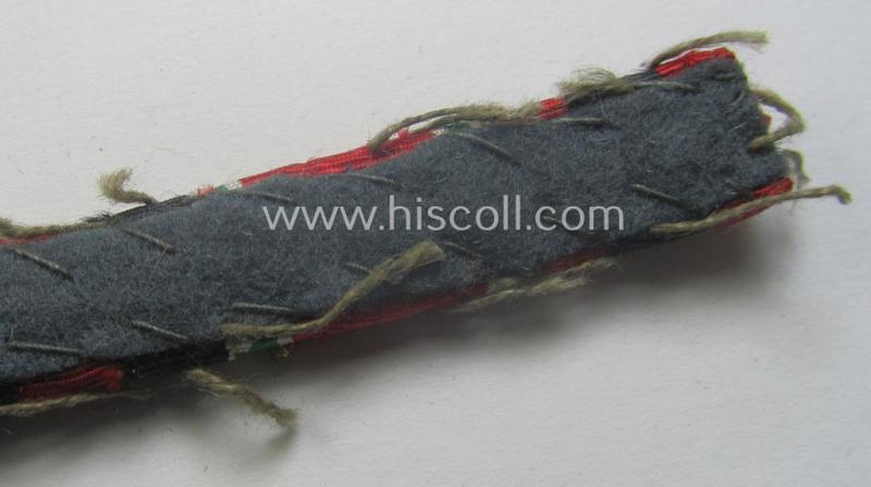 This is a truly attractive - and with certainty unusually- ie. fairly scarcely encountered! - long-sized (ie. 8-pieced!), WWI (ie. WWII-) period ribbon-bar (ie. 'Feld- o. Bandspange') respectively showing the ribbons for a WWI-period: 'Eisernes Kreuz II. Klasse' (or: iron-cross second class), a WWII- (ie. TR-) period: 'Kriegsverdienstkreuz II. Klasse mit Schwertern' (or: war-merits' cross 2nd class with swords), a WWI-period: 'Frontkämpferkreuz 1914-18' (ie.: 'Kriegsteilnehmerkreuz 1914-18 mit Schwertern') having a golden-toned sword-device attached, two (WWII- ie. TR-period-) so-called: 'WH-Dienstauszeichnungen der 3. u. 4. Klasse' (or WH loyal-service medals as awarded for four- ie. twelve years of loyal service both having a (silverish-coloured-) eagle-device attached, a: 'Medaille zur Erinnerung an den 1. Oktober 1938' (or: Czech 'Anschluss'-medal) as was awarded to all members of the armed forces that participated in the German occupation of Czechoslovakia that started on: '1. Oktober 1938' and that comes with a firmly attached miniature-sized 'Prager Burg-Spange' and two Austrian (WWI-period) awards and that comes in an overall nice- (albeit used- and/or worn, condition. All eight ribbons are of the regular (ie. larger) ribbon-bar-size and measure approximately 2,5 cms. each (as is more often encountered). The 'Spange' comes in a very nice condition overall and is of course fully functional: it is, however, not assembled onto a metal 'backing-plate' but was just 'backed' with a piece of (greyish-blue-toned) wool: as such it was directly stitched onto a tunic (as can be seen on the pictures). The attached (and detailed!) 'Auflagen' ie. devices show some minimal age ie. tarnish but have all three been nicely preserved. This particular example was I deem just moderately worn ie. used: it does show some usage-marks and/or minimal aging ie. wear. Simply a very attractive 'Band- o. Feldspange' showing various (scarcely seen!) so-called: 'Auflagen' that is not that often offered for sale: great to decorate almost any TR-period tunic!