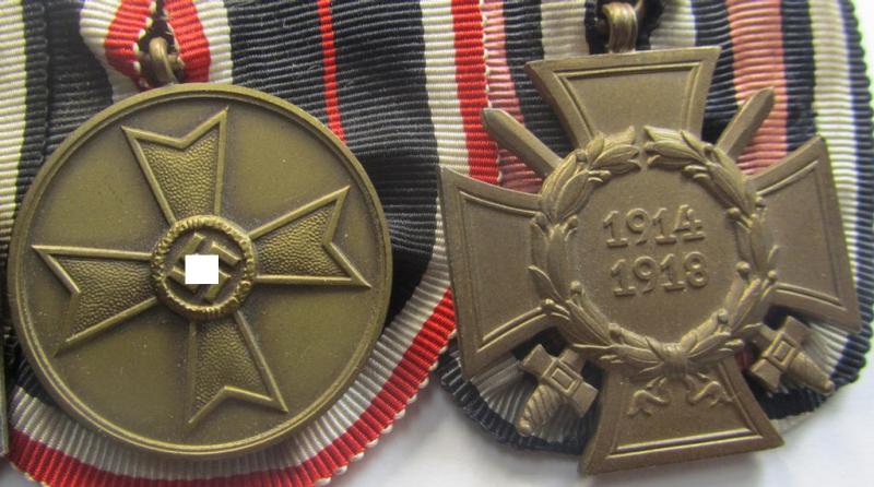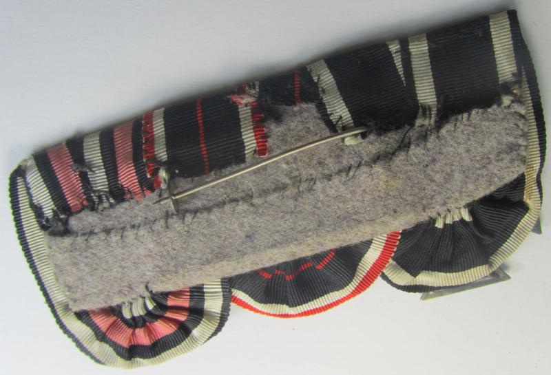 3-pieced 'WWI'- (ie. TR-) related medal-bar (ie. 'Ordenspange') resp. depicting a WWI-period: 'EK II.Kl.', a: 'KvK Medaille 1939' and a: 'FKK 1914-18 mit Schwn.'
