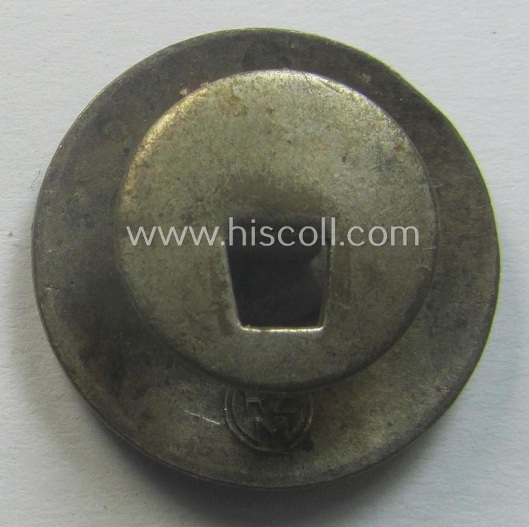 The attractive - and truly very nicely preserved! - N.S.D.A.P.-membership-lapel-pin (ie. 'N.S.D.A.P.-Parteiabzeichen') - which has been just moderately used ie. worn - has a very nicely preserved age-patina and has most certainly never been cleaned nor polished: it is showing just minimal wear but is totally void of any (enamel)damage (as can be seen on the pictures): just some regular wear ie. minimal scratches are noticable. The badge shows the superimposed makers'-designation: 'RzM' and/or: 'M1/72' and is as such an example that was produced by the maker named: 'Fritz Zimmermann' as was based in the town of Stuttgart. It shows, moreover, a somewhat tarnished- (ie. minimally stained) finish as can be seen from the pictures. This example - which has a somewhat bright-red-coloured- (ie. enamelled) area - comes mounted onto its regular-styled, so-called: 'button-hole'-set-up which is naturally still fully functional and/or present (as can be seen on the pictures). I deem this is an attractive 'N.S.D.A.P.'-membership-pin ie. party-badge that is most certainly accordingly priced!