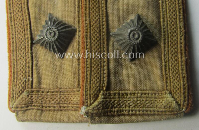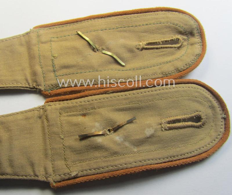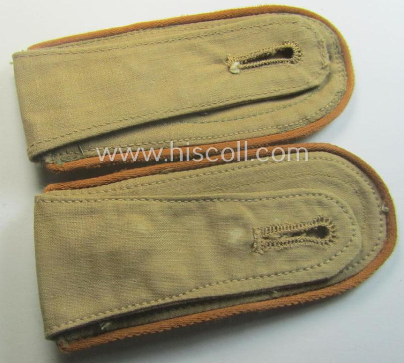 Pair of - truly used- and/or worn! - WH (Luftwaffe) 'tropical-styled' NCO-type shoulderstraps (as was specifically for usage on the tropical-shirts ie. tunics) as was intended for usage by a: 'Feldwebel der Nachrichten-Trpn.'