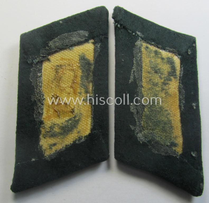 Pair of WH (Heeres) collar-tabs (ie. 'Kragenspiegel für Offiziere') as was piped in the bright-yellow-coloured branchcolour as was intended for usage by an: 'Offizier der Nachrichten-Trpn.'