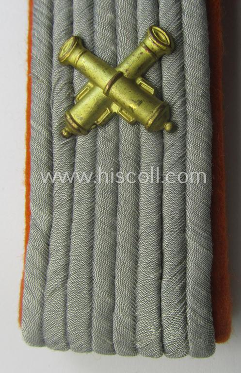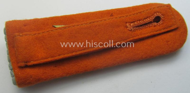 Single, WH (Heeres) 'cyphered' officers'-type shoulderboard as piped in the bright-orange (ie. 'orangeroter'-)coloured branchcolour as intended for a: 'Leutnant u. Waffenoffizier' (or: weapon-equipment officer)
