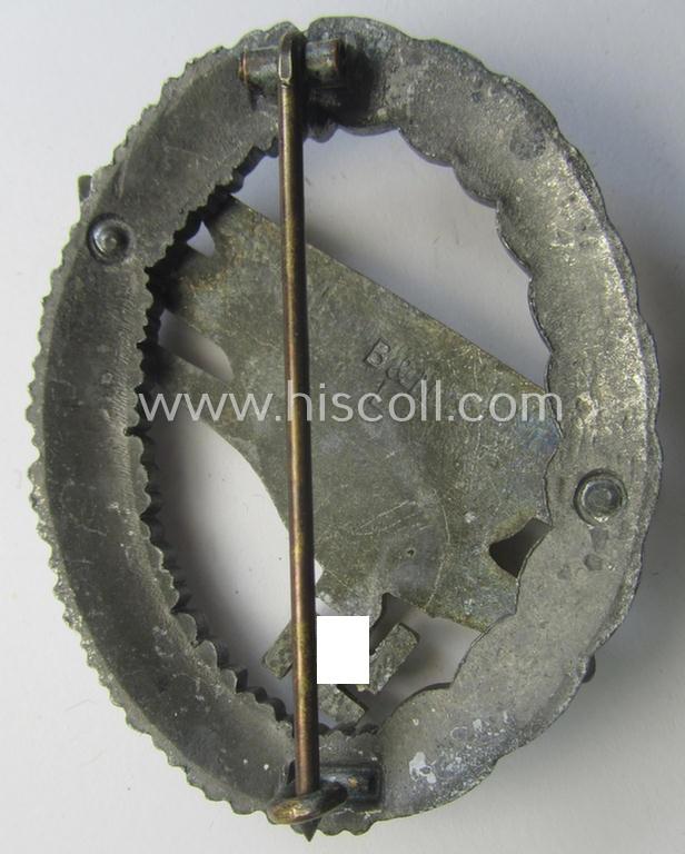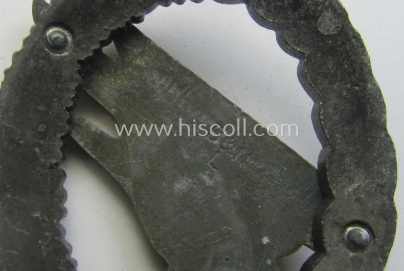WH (Luftwaffe) 'Fallschirmschützen-Abzeichen' (or: paratroopers-jumpbadge) being a neatly maker- (ie. 'B&N - L'-) marked- and typical zinc- (ie. 'Feinzink'-) based example as was produced by the maker: 'Berg u. Nolte'