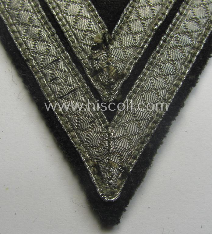 WH (Heeres) Pz-'Armwinkel' (or: rank-chevron) as intended for usage on the black-coloured 'Panzer'-type 'wrap-around'-tunics as was intended for usage by a soldier with the (unusually encountered!) rank of: 'Stabsgefreiter'