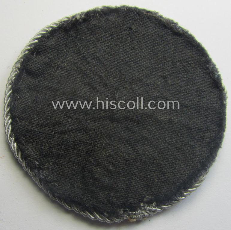 This is an attractive - and clearly used- ie. worn and actually not that easily found! - example of a WH (Luftwaffe) machine-embroidered, so-called: trade- ie. special-career-patch (ie. 'Tätigkeitsabzeichen') as was specifically intended for: 'geprüfter Peilfunker' (ie. senior direction-finder-operators) and that comes in an overall nice- (and as stated moderately used- ie. most certainly once tunic-attached-), condition. The badge - which has the neat 'greyish-silver'- and braid-based border' (ie. 'Kordel') attached - signified that the bearer had sucessfully succeeded various tests in this speciality. The piece - which shows a additionally-added linnen-based- and/or black-coloured 'backing' - is nicely machine-woven on a LW bluish-grey-coloured- and/or woolen-based background and simply shows moderate age and/or wear. Simply a neat - and truly unusually found! - LW-'Tätigkeits-Abzeichen' that is with certainty accordingly priced!