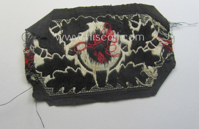 Truly used - and actually scarcely encountered! - early-pattern, WH (Heeres) specific cocarde as executed in white-coloured linnen as intended for usage on the: 'Pz'-beret (ie. 'Panzerschutzmütze') as executed in so-called: 'BeVo'-weave-pattern