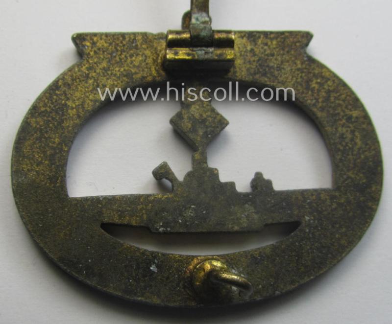 Later-war-period - WH (Kriegsmarine) zinc- ie. 'Feinzink'-based, so-called: 'U-Bootkriegsabzeichen' (or: U-boat war-badge) being a (typical) non-marker-marked example by a - by me - unidentified maker