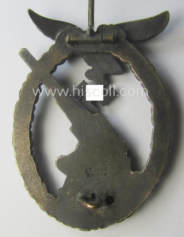 WH (Luftwaffe) 'Flakkampfabzeichen' being a detailed 'Buntmetall'-based and (unusually seen!) non-maker-marked example as was produced by the: 'C.E. Juncker'-company and that comes as moderately worn
