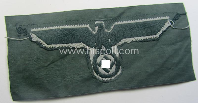 WH (Heeres) early- (ie. pre-war-) period- and/or greyish-coloured breast-eagle of the: 'M36'- (ie. 'M40'-) pattern as was executed in the 'BeVo'-weave pattern on a darker-green-coloured background