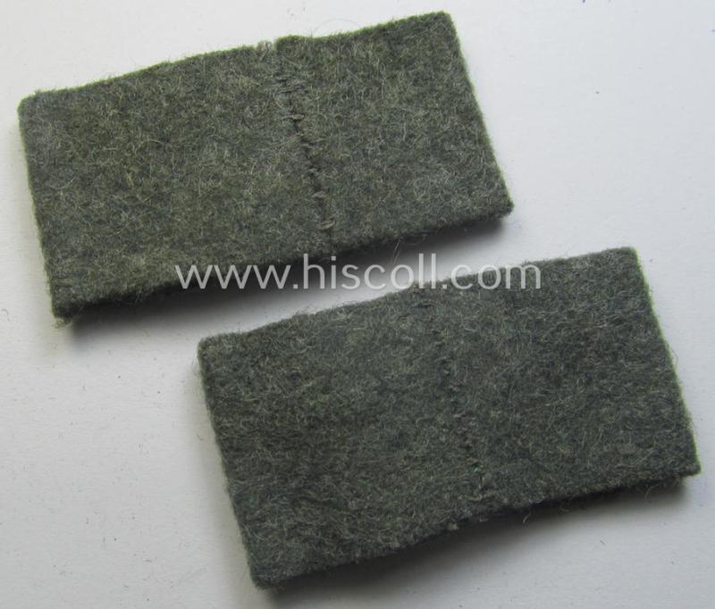 This is an attractive - fully matching and scarcely found! - pair of WH (Heeres) 'Pioniere'-related, so-called: regimental shoulderstrap-'slip-ons' (ie. 'Schulterstück-Überschuben') as was intended for usage by a: 'Soldat des Pionier-Abteilungs 62' and that comes in a wonderful- (and I deem simply never worn- nor used-), condition.The pair is neatly 'machine-stitched'-embroidered (by means of so-called: 'Kurbelstickerei') in the typical black- (ie. 'schwarzer'-) coloured wool and does show some minimal storage-age only. Simply an attractive pair of 'Pioniere'-related- (ie. army-engineers-) related 'Überschuben' that is - I deem - accordingly priced: great to 'decorate' a pair of 'schwarzer'-piped 'Heeres'-shoulderstraps or ideally fitted to keep in any insignia-collection!