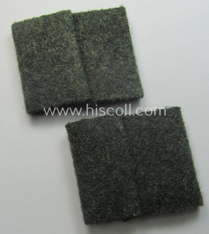This is an attractive - fully matching and with certainty scarcely found! - pair of WH (Heeres) 'Infanterie o. Landesschützen'-related, so-called: regimental-shoulderstrap-'slip-ons' (ie. 'Schulterstück-Überschuben') as was intended for usage by a: 'Soldat des Landesschützen-Batalions 881' and that comes in a wonderful- (and I deem simply never worn- nor used-), condition. The pair is neatly 'machine-stitched'-embroidered in the typical white- (ie. 'weisser'-) coloured wool (as done in Gothic-styled, so-called: 'Kurbelstickerei) and does show some minimal storage-age only. Simply an attractive pair of 'Infanterie o. Landesschützen'-related 'Überschuben' that is - I deem - accordingly priced: great to 'decorate' a pair of 'weisser'-piped 'Heeres'-shoulderstraps or ideally fitted to keep in any insignia-collection!