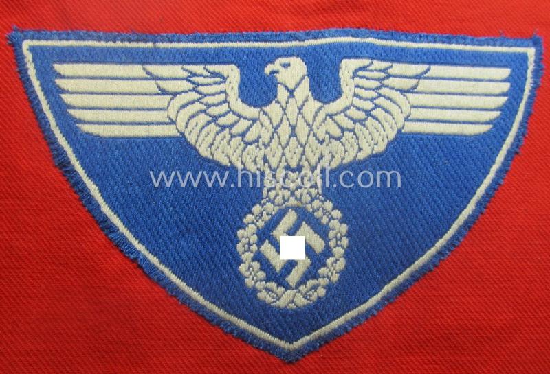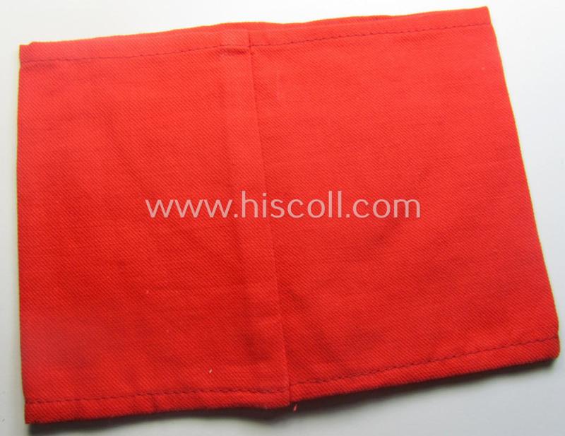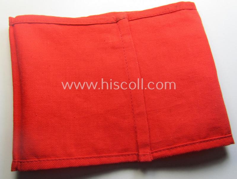 This is an attractive - and actually never before seen and surely very rarely encountered! - example of a bright-red-coloured armband (ie. 'Armbinde') as was (I deem presumably) used by the various officials serving within the: 'Deutsche Reichspost' (showing a 'BeVo'-woven eagle-device aka: 'Zeesener Adler') being a never used- ie. still 'virtually mint- ie. unissued'-, example. The somewhat smaller- albeit broader-sized armband (ie. measuring 33 x 25 cms.) is executed typical, bright-red-coloured linnen-based material and shows a nicely (typical 'BeVo'-woven) so-called: 'Zeesener Adler'-attached ('off-factory'-done by means of 'zig-zag'-machine-stitching as can be noticed on the pictures). These eagles - which are nicely woven in white-coloured linnen onto a cornflower-blue-coloured background - are facing left and were instituted by a specific order (ie. 'Erlass') as was issued by the responsible 'Reichsminister' named Richard Ohnesorge on 16 August 1942. The piece was hardly (ie. simply never) worn and/or used and comes in a pristine condition. I am convinced that this is a very rarely encountered armband (ie. 'Armbinde') that saw usage by the various officials serving within the: 'Deutsche Reichspost'. I deem that I have priced this rare example according to its obvious rarity and/or desirabilty!