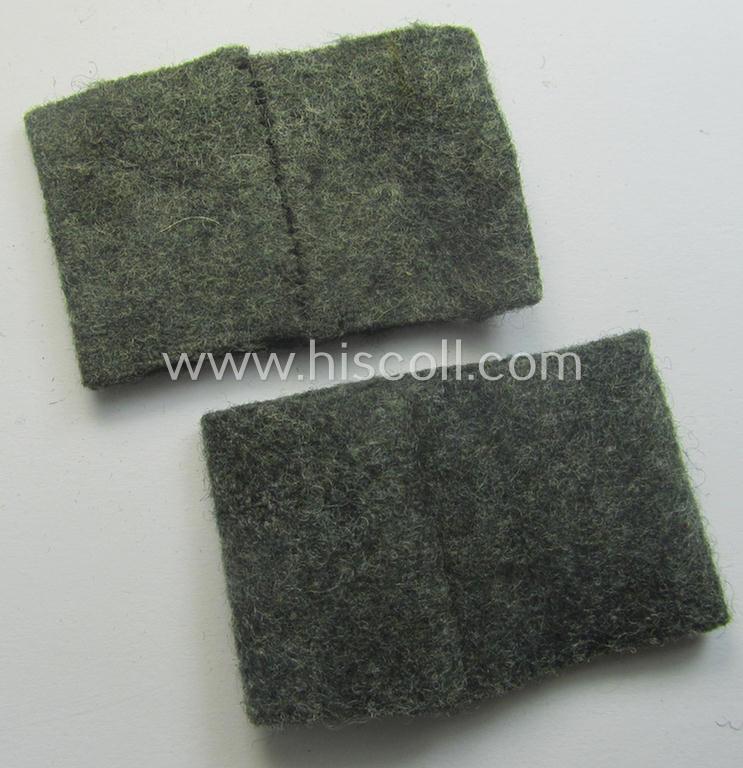 This is an attractive - truly matching and/or fully identical! - pair of WH (Heeres) 'Sanitäter'-related, so-called: regimental shoulderstrap-'slip-ons' (ie. 'Schulterstück-Überschuben') as was specifically intended for usage by a: 'Soldat des Sanitäts-Abteilungs 33' and that comes in an overall very nice- (and I deem simply never worn- nor used- ie. still 'virtually mint unissued'-), condition. The pair is neatly 'machine-stitched'-embroidered in the typical darker-blue- (ie. 'blauer'-) coloured wool by means of so-called: 'Kurbelstickerei' as to be expected. Simply a nice opportunity to aquire an attractive pair of 'Sanitäter'-related 'Überschuben' that is - I deem - accordingly priced: great to 'decorate' a pair of 'darker-blue'-piped 'Heeres'-shoulderstraps or ideally fitted to keep in any insignia-collection!