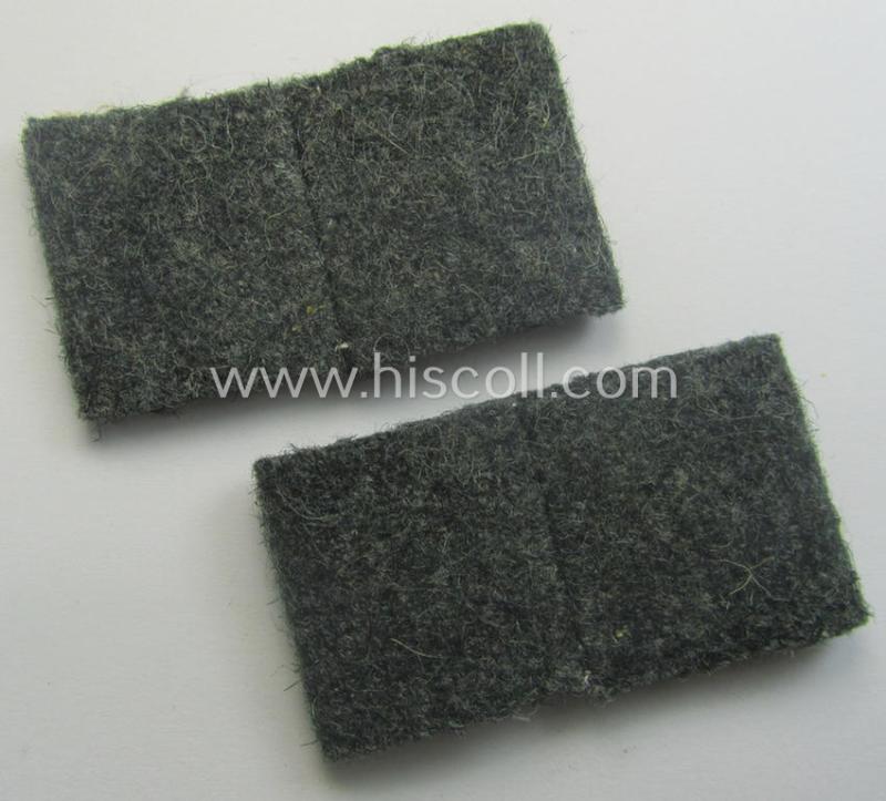 This is an attractive - truly matching and/or fully identical! - pair of WH (Heeres) 'Nachrichten'-related, so-called: regimental shoulderstrap-'slip-ons' (ie. 'Schulterstück-Überschuben') as was specifically intended for usage by a: 'Soldat des Nachrichten-Abteilungs 40' and that comes in an overall very nice- (and I deem simply never worn- nor used- ie. still 'virtually mint unissued'-), condition. The pair is neatly 'machine-stitched'-embroidered in the typical bright-yellow- (ie. 'zitronengelbener'-) coloured wool by means of so-called: 'Kurbelstickerei' as to be expected. Simply a nice opportunity to aquire an attractive pair of 'Nachrichten'-related 'Überschuben' that is - I deem - accordingly priced: great to 'decorate' a pair of 'bright-yellow'-piped 'Heeres'-shoulderstraps or ideally fitted to keep in any insignia-collection!