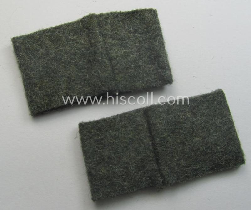 This is an attractive - fully matching and fairly scarcely found! - pair of WH (Heeres) 'Infanterie'-related, so-called: regimental-shoulderstrap-'slip-ons' (ie. 'Schulterstück-Überschuben') as was intended for usage by a: 'Soldat des Infanterie-Regiments 417' and that comes in a wonderful- (and I deem simply never worn- nor used-), condition. The pair is neatly 'machine-stitched'-embroidered in the typical white- (ie. 'weisser'-) coloured wool (as done in Latin-styled, so-called: 'Machinestickerei) and does show some minimal storage-age only. Simply an attractive pair of 'Infanterie'-related 'Überschuben' that is - I deem - accordingly priced: great to 'decorate' a pair of 'weisser'-piped 'Heeres'-shoulderstraps or ideally fitted to keep in any insignia-collection!
