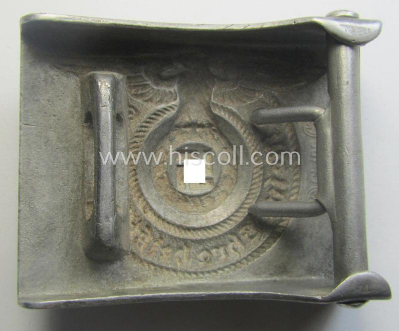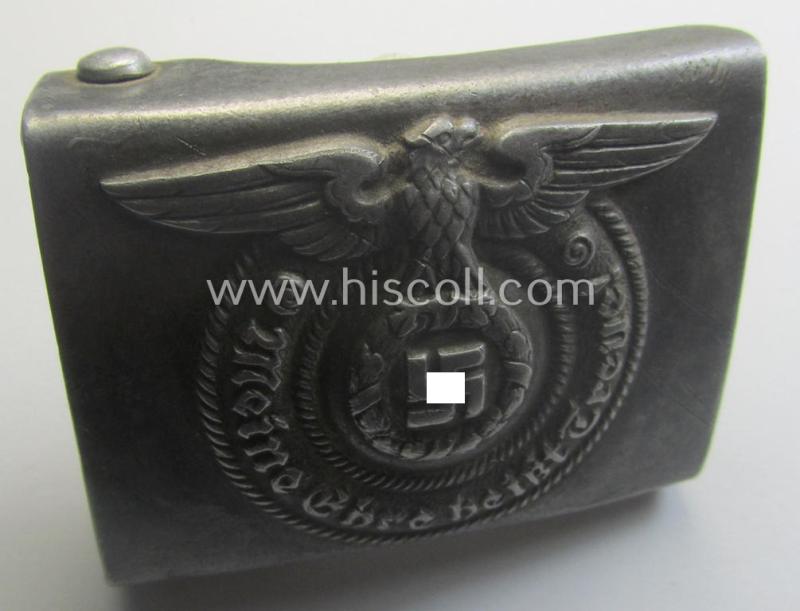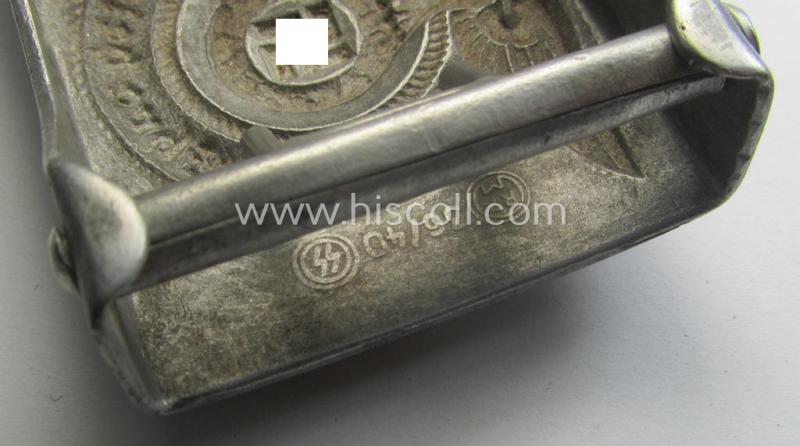 SS- (ie. Waffen-SS), aluminium-based, enlisted-mens'- (ie. NCO-type-) belt-buckle being a neatly maker- (ie. 'RzM - 36/40 - SS'-) marked example that comes in a moderately used- ie. worn, condition