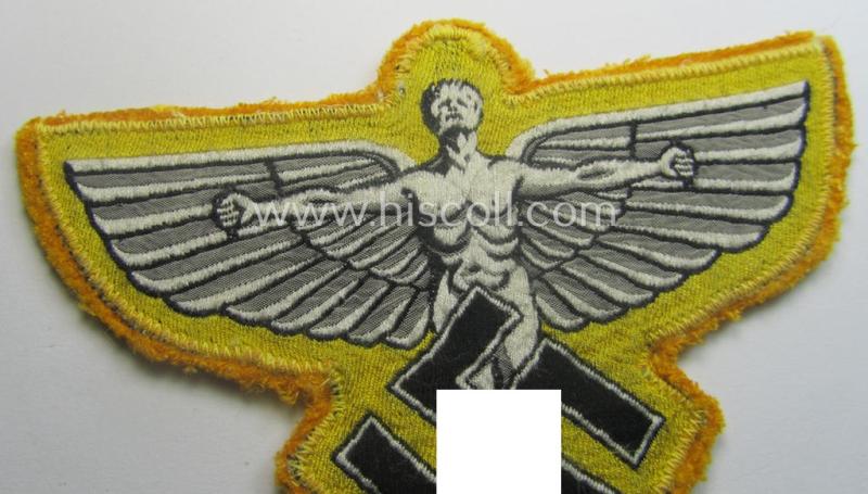 Unusual, bright-yellow-coloured: N.S.F.K.- (or: 'National Socialistisches Flieger Korps') sports-shirt breast-eagle being a nicely 'BeVo'-woven- (and carefully 'cut-out'!) example