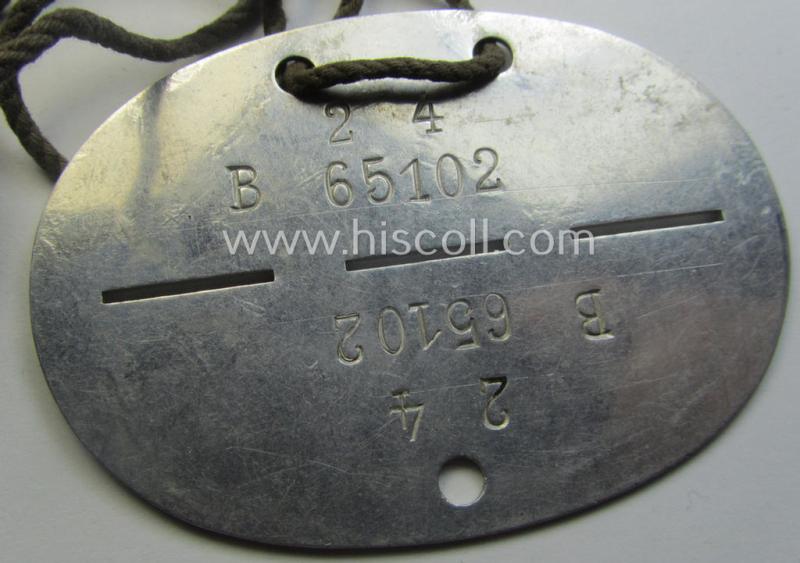 Aluminium-based, WH (LW) ie. 'Flieger o. Kampfgeschwader'-related ID-disc bearing the clearly stamped- and/or: 'coded'-unit- ie. 'MOB'-designation that reads: '65102' (and as such belonging to the: '3./KG 51')