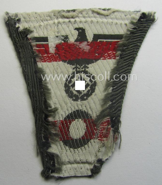 'Foreign-produced' (!) WH (Heeres) related, so-called: 'M43-pattern'-cap-trapezoid (ie. 'Mützentrapez') as executed in machine-woven- (ie. BeVo-like-) pattern onto a typical greenish-/field-grey-coloured- and/or linnen-based background