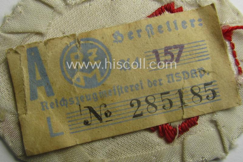 This is an attractive - truly used- and/or shirt- ie. tunic-removed example of a: HJ/BDM (ie. 'Hitlerjugend'/'Bund Deutscher Mädel') so-called: trade- or specialist-armbadge (ie. 'HJ/BDM-Tätigkeits-Abzeichen') as executed in neat 'BeVo'-weave pattern as was specifically intended for usage by a: 'Feldscher' (or: medical orderly) that still retains its period-applied 'RzM'-etiket and that comes in an overall nice- (ie. truly used- and/or shirt-removed -), condition. The neat badge - only approximately sized: 6 x 4,5 cms. - was neatly folded and confectioned. It can, however, still easily be mounted onto a tunic or shirt if wished so. The piece comes with its period-applied 'RzM'-etiket still in place (as can be seen on the pictures). Simply a nice occasion to acquire a neat - and fairly unusally encountered! - HJ/BDM cloth-based speciality-patch (ie. 'HJ/BDM-Tätigkeits-Abzeichen') for a competitive price!