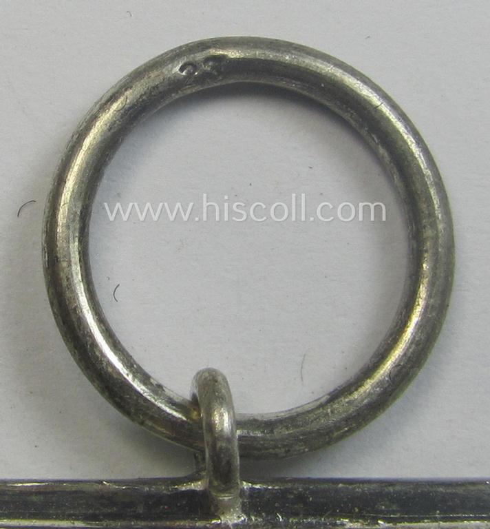 The truly very attractive piece - which was presumably issued but that was simply never worn nor even mounted - came together with its 'mint- ie. unissued', neatly pre-folded, non-confectioned (and approx. 29 cms. long-sized) ribbon (ie. 'Bandabschnitt'). The cross - which shows a clear makers'-designation: '23' stamped into its ring - was with certainty never cleaned and has a very attractive and only minimally tarnished age-patina: it shows, however, all of its off-factory-applied so-called: 'hochpolierte Kanten' (or: polished sides) and has just a minimally 'tarnished' finish (as can be seen on the pictures). The cross has a truly very nicely preserved, black-finished (ie. clearly 'satin'-like ie 'matted'-style) core: it is void of any paint-damage or alike (as can be seen on the pictures). The piece is just a tiny bit dusty and/or stained but was never cleaned nor polished. The cross is an evident specimen that was produced by the maker ie. 'Hersteller' named: 'Arbeitsgemeinschaft für Heeresbedarf in der Graveur- u. Ziselierung' as was based in the town of Berlin and has truly nice and/or pronounced detail as to be expected for a cross by this desirable - and not that easily found! - maker. The IC was recently found at a German private-household and was never before in collectors'-hands. Simply an attractive and clearly maker-marked 'EK II. Klasse' that will be very hard to be upgraded!