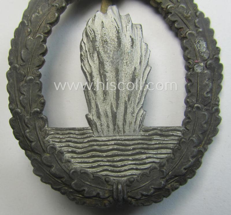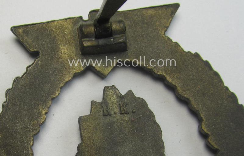 WH (Kriegsmarine) 'Kriegsabzeichen für Minensuch-, U-Boot-Jagd und Sicherungs-Verbände' being a detailed and clearly maker- (ie. 'R.K.') marked, 'Feinzink'-based example as was produced by the 'Rudolf Karneth'-company