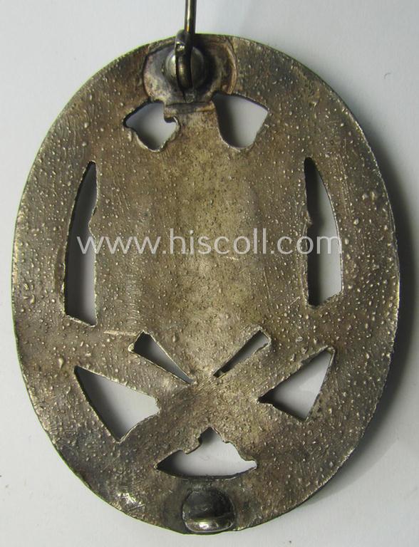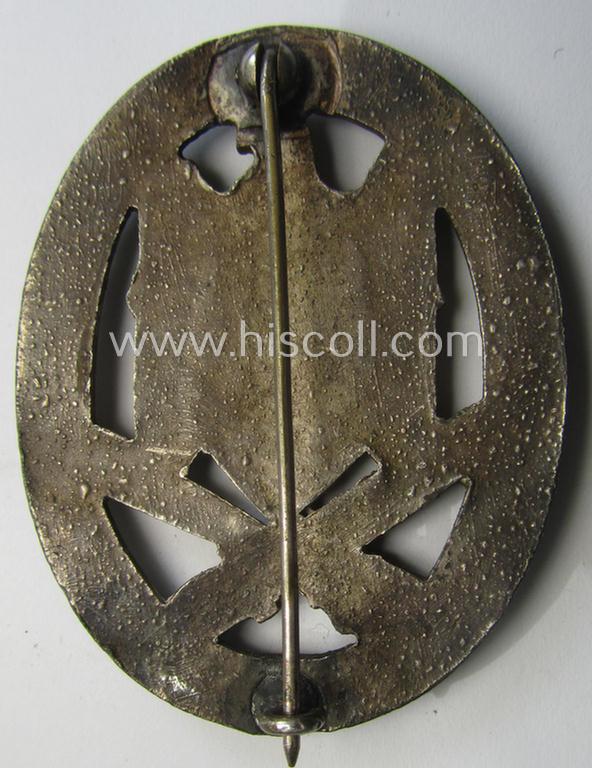 'Allgemeines Sturmabzeichen' (or: General Assault Badge ie. GAB) being a typical unmarked, zinc-based- (ie. 'Feinzink'-) and/or: 'semi-hollow-back'-version as was (I deem) produced by the: 'Rudolf Karneth'-company