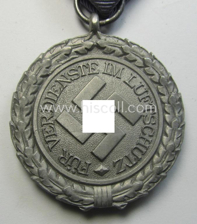 Light-weight (ie. typical aluminium-based) medal as was intended for air-raid wardens 2nd. class (or: 'Luftschutz-Ehrenzeichen 2. Stufe') that comes stored in its period, dove-grey-coloured etui