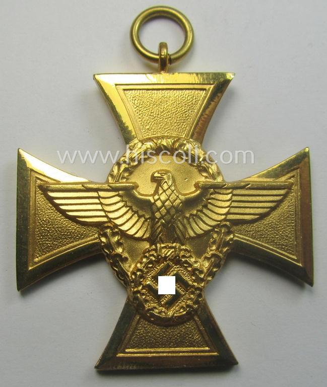 Golden-class 'Pol.-Dienstauszeichnung 1. Stufe' (or: police loyal-service medal first-class) that comes stored in its period, green-coloured (and luxuriously styled!) etui and that comes with its accompanying ribbon (ie. 'Bandabschnitt')
