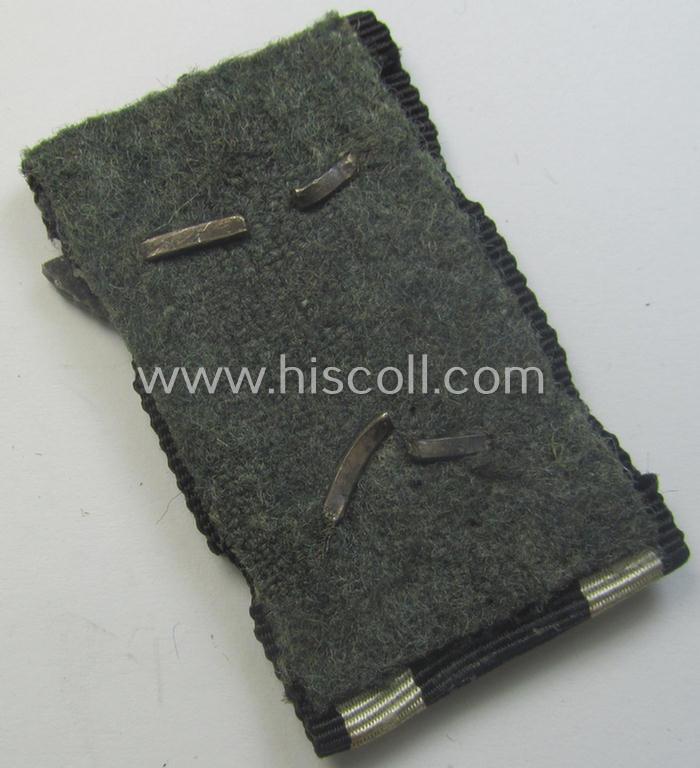 This is a truly very attractive - and most certainly issued and/or just moderately worn- and carefully tunic-removed! - example of a so-called: 'Wiederholungsspange zum EK II. Klasse' (or: bar to the WWI IC second-class) being a typical (and possibly) maker-marked (ie. 'Buntmetall-versilbertes') example as was (I deem) produced by the desirable maker (ie. 'Hersteller') named: 'Otto Schickle' as was based in the town of Pforzheim and that comes in an overall very nice- (albeit most certainly issued- and/or just moderately worn-), condition. The neat piece is somewhat tarnished but is still very detailed and/or pronounced as to be expected: it retains all its four functional (and totally unaltered) prongs (as can be seen on the pictures). The 'Spange' is as stated above only minimally stained ie. dirty: it retains a very nice age-patina and was I deem never recently cleaned nor polished. It came (very unusally!) mounted onto a period piece of WWI-period IC-ribbon (ie. 'Bandabschnitt') that was period 'backed' with a piece of field-grey-toned wool (as can be noticed on the pictures). These attractive - by the 'Otto Schickle'-company produced - 'Wiederholungsspangen zum EK II. Klasse' rank amongst the most desirable and scarcely encountered examples and are not that easily found. Simply a very attractive example that is I deem accordingly priced!
