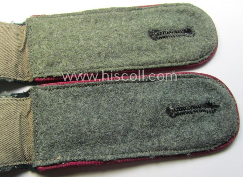 Pair of early- (ie. mid-) war-period so-called: 'M40'-pattern, WH (Heeres) EM-type shoulderstraps as piped in the 'bordeaux'-coloured branchcolour as intended for a: 'Soldat eines (Nebel)Werfer-Rgts. o. Abtlgs.'