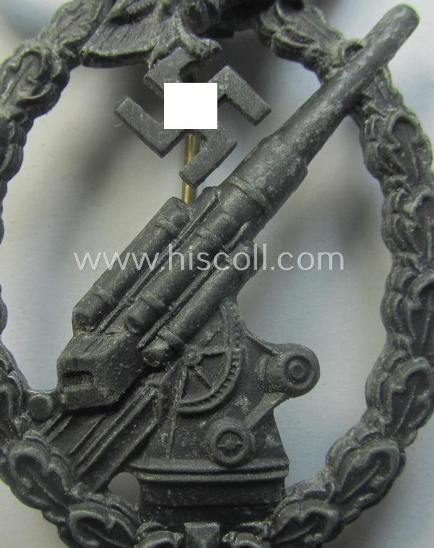 Truly converse-shaped - and just moderately used! - 'Feinzink'-based example of a WH (LW) 'Flakkampfabzeichen' being a detailed albeit non-maker-marked example as was (I deem) produced by the: 'Steinhauer & Lück'-company