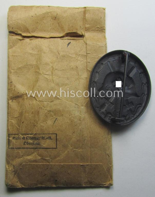'Verwundeten-Abzeichen in Schwarz' being a clearly maker- (ie. '65'-) marked example by the: 'Klein & Quenzer'-company that came stored its (scarcely seen!) period pouch