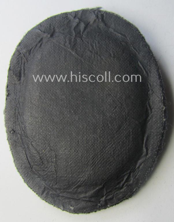 This a truly very attractive - and actually not that easily ie. scarcely encountered! - WH (Luftwaffe) 'Fallschirmschützen-Abzeichen in Stoff' (or: cloth-based, paratroopers'-jump-badge) that is neatly machine-embroidered in multi-coloured- (and typical linnen-based-) thread and being of the neat, so-called: 'off-factory'-'padded version' and that comes in an overall very nice- (I deem issued albeit never used nor once tunic-attached-), condition. This particular example has great pronounced detail and is made more 'thicker' by the producing-company in order to closely resemble its metal-based counterparts. The piece is nicely 'backed' with black-coloured material as is more often encountered (which 'backing' is completely present as can be seen on the pictures). The badge just shows some minimal (storage)age and/or staining simply caused by decades of storage. These detailed cloth-based versions were preferred by the soldiers, NCOs and/or officers 'stationed in the field' for obvious reasons. Simply an attractive and fully 'text-book' example of a WH (Luftwaffe) 'Fallschirmschützen-Abzeichen in Stoff' that will be very hard to be upgraded and that is I deem accordingly priced!