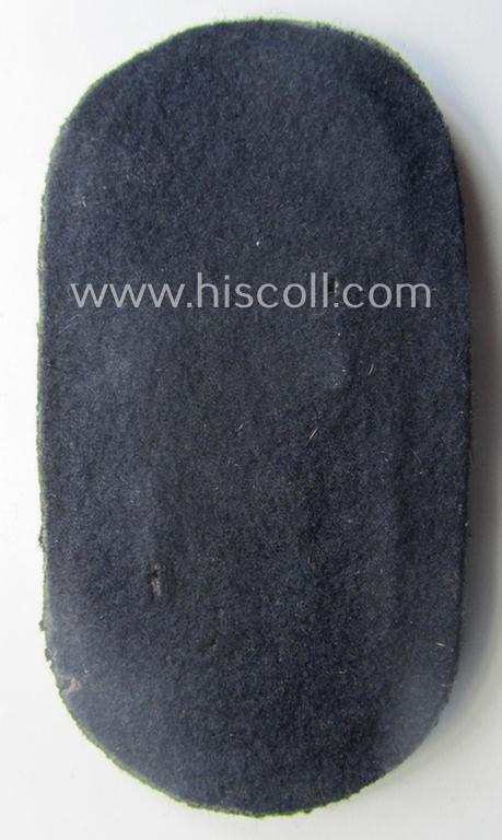 This is a truly attractive - just moderately used and actually very scarcely encountered! - WH (Kriegsmarine) 'Narvik'-campaign-shield being a very detailed example as was executed in (somewhat lighter-toned) golden-coloured (and non-magnetic) zinc- (ie. 'Feinzink'-) based metal and that comes in a clearly issued- (and moderately worn- ie. most certtainly once tunic-attached- and/or carefully removed-), condition. The (naturally non-magnetic) shield comes complete with its original (presumably zinc-based) 'back-plate' and darker-blue-coloured, woolen cloth (on both front- AND back-side!) and retains all its four period-mounted prongs in place (which all four of them are present and functional as can be seen on the pictures). The shield shows some normal aging and/or moderate tarnish caused by years of storage but has nevertheless retained extraordinary detail. The neat piece still retains most of its golden-toned finish something that is not always the case (as can be seen on the pictures). The shield was with certainty never cleaned nor polished and comes as recently found at a private German-household.). Simply a very attractive - and naturally 100% garuanteed original, 'Kriegsmarine'-pattern 'Narvik'-campaign-shield that is priced according to its unmistaken scarcity and/or desirability!