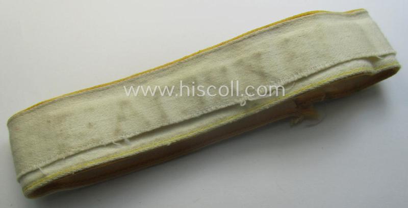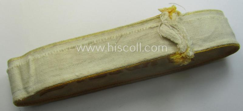 This is a truly attractive - and/or fully 'textbook'! - example of a WH cuff-title (ie. 'Ärmelstreifen') entitled: 'Kreta' that comes in an issued-, clearly worn- and/or most certainly once tunic-attached, condition. The cuff-title comes in a minimally, period-shortened condition (ie. it measures folded approximately 36 cms.) and was as stated above clearly issued and/or worn. Both ends show some normal fraying as is more often encountered and the piece came period 'sewn-together' in order to be easily placed on the tunic (as can be seen on the pictures). The cuff-title just shows some minimal age ie. staining caused by moderate wear and/or decades of storage only (as can be seen on the pictures). It should be stated that these 'Kreta'-cuff-titles are not to be regarded as commemorative cuff-titles (such as the 'Afrikakorps' cuff-title) but were regarded as official awards that needed official recognition (and entries in both 'Soldbuch' and/or 'Wehrpass'). Simply a very attractive - totally untouched and naturally genuine! - period-example that will be very hard to be upgraded and that is I deem accordingly priced!
