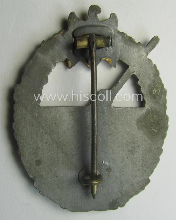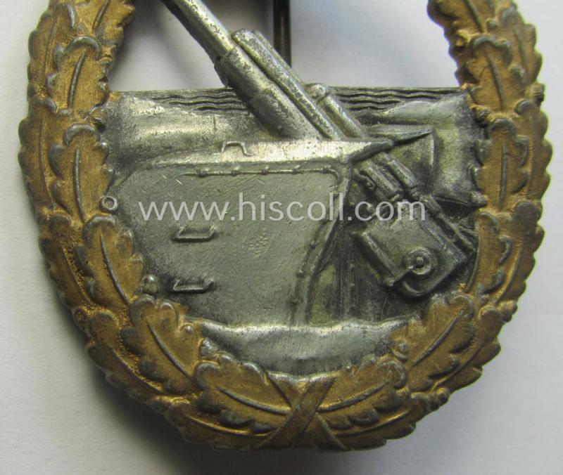WH (Kriegsmarine) 'Marine-Artillerie-Abzeichen' being a non-maker-marked- and/or typical zinc- (ie. 'Feinzink'-) based example as was produced by the: 'Friedrich Linden'-company