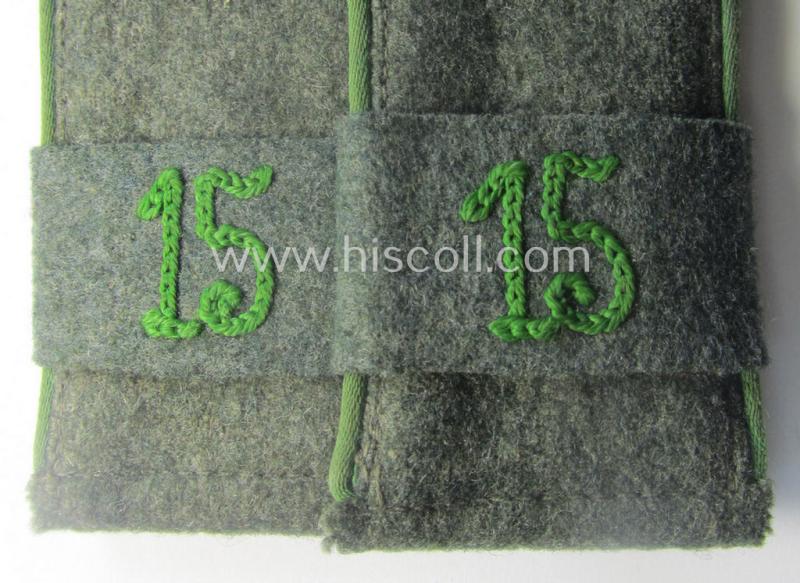 Pair of early- (ie. mid-) war-period (ie. 'M40 o. M43'-pattern), WH (Heeres) EM-type shoulderstraps as was intended for a: 'Soldat des Panzergrenadier-Regiments 15' and that comes with its period-attached 'Überschübe'-pair