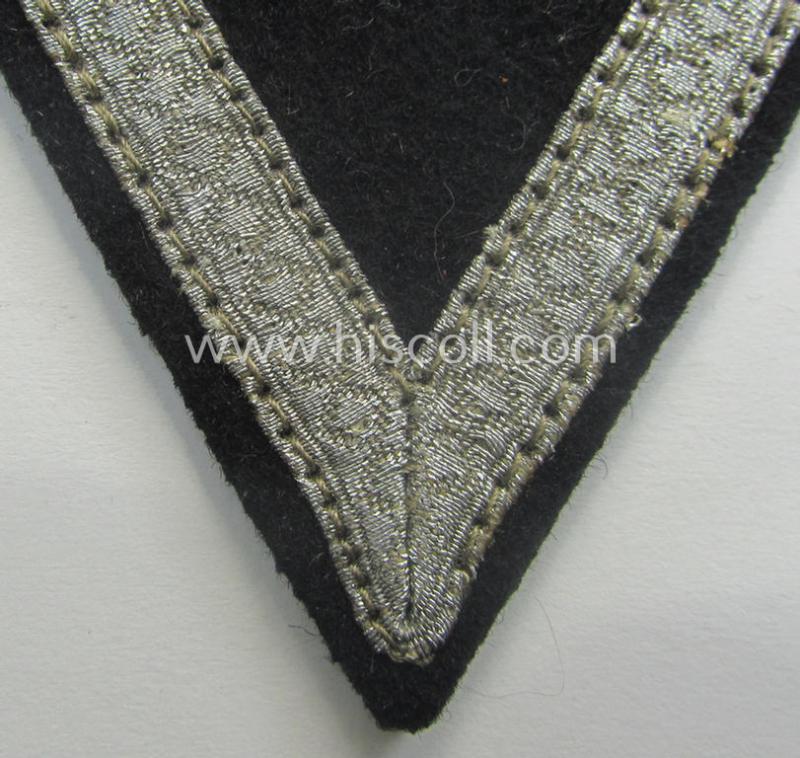 Waffen-SS- (ie. Heeres Panzer-) type 'Armwinkel' (or: rank-chevron) as executed on black-coloured wool as was intended for an: 'SS-Mann' (ie. 'Gefreiter')