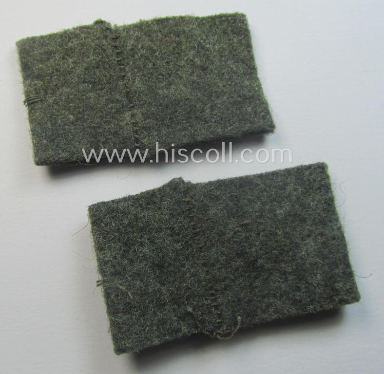 This is an attractive - fully matching and in this branchcolour truly scarcely found! - pair of WH (Heeres) 'Kradschützen'-related, so-called: regimental shoulderstrap-'slip-ons' (ie. 'Schulterstück-Überschuben') as was intended for usage by a: a: 'Soldat des Kradschützenbtl. der Pz.Div. u. Inf.Div. (mot) 159' (or: simple soldier who served within a tank- ie. infantry-related, motor-cycle unit, numbered: '159') and that comes in a wonderful- (and I deem simply never worn- nor used-), condition. The pair is neatly 'machine-stitched'-embroidered (by means of so-called: 'Kurbelstickerei') in the typical copper-brown- (ie. 'kupferbrauner'-) coloured wool and does show some minimal storage-age only. Simply an attractive pair of 'Kradschützen'-related 'Überschuben' that is - I deem - accordingly priced: great to 'decorate' a pair of 'kupferbrauner'-piped 'Heeres'-shoulderstraps or ideally fitted to keep in any insignia-collection!