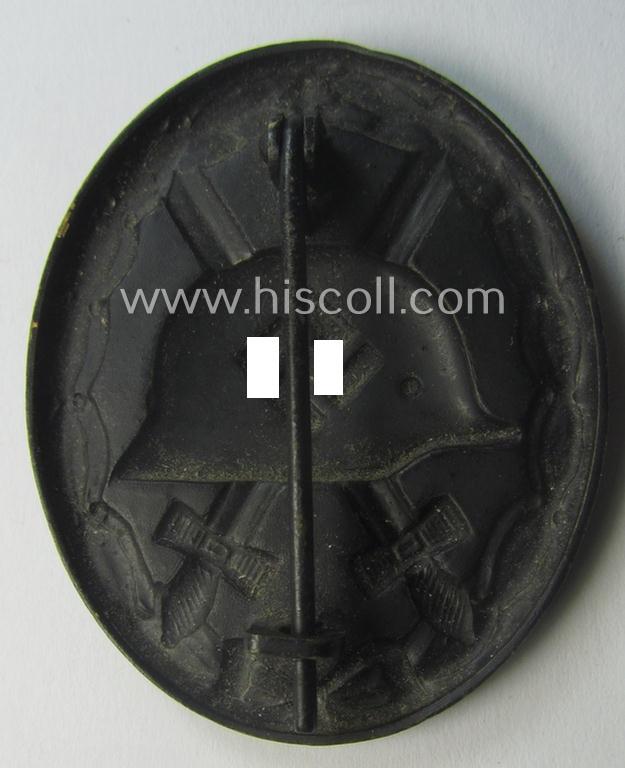 Moderately used- and/or worn, black-class wound-badge (or: 'Verwundeten-Abzeichen in Schwarz') being a typical non-magnetic and/or non-maker-marked example