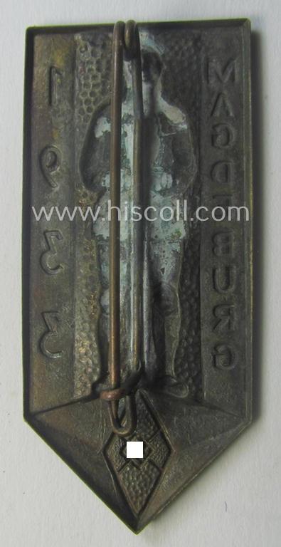 HJ- (ie. 'Hitlerjugend'-) related day-badge (ie. 'tinnie' or: 'Veranstaltungsabzeichen') as was issued to commemorate a HJ-related event and that is simply entitled: 'Magdeburg 1933'