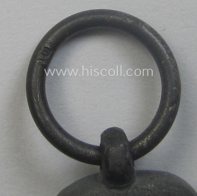 This is a very attractive specimen of a: 'Winterschlacht im Osten 1941/42'-medal (ie. 'Ost'-medal) as was produced by the: 'Förster & Barth'-company and being a clearly maker- ie. '10'-marked specimen that came stored in its original 'Zellstoff'-based pouch of issue as found and stored for decades. The cross came together with its original, minimally confectioned and folded (approx. 19 cms. long) ribbon and was still packed in its neat ('Zellstoff'-based) and reddish-brown coloured, carton pouch when found. The medal is - as stated above - a neat silverish-grey-toned- and typical zinc- (ie. 'Feinzink'-) based specimen that was issued but hardly- ie. never used. The medal has a nicely preserved age-patina and was most certainly never cleaned nor polished and therefore are details and/or finish still very nice and/or crisp. The pouch comes in an equally nicely preserved condition: it is fully functional and complete (and shows the printed makers'-mark of the company 'Förster & Barth' as was based in the town of Pforzheim on its back). Simply a very attractive - and completely 'matching'! - 'Winterschlacht im Osten 1941/42'-medal-set that will be very hard to be upgraded!