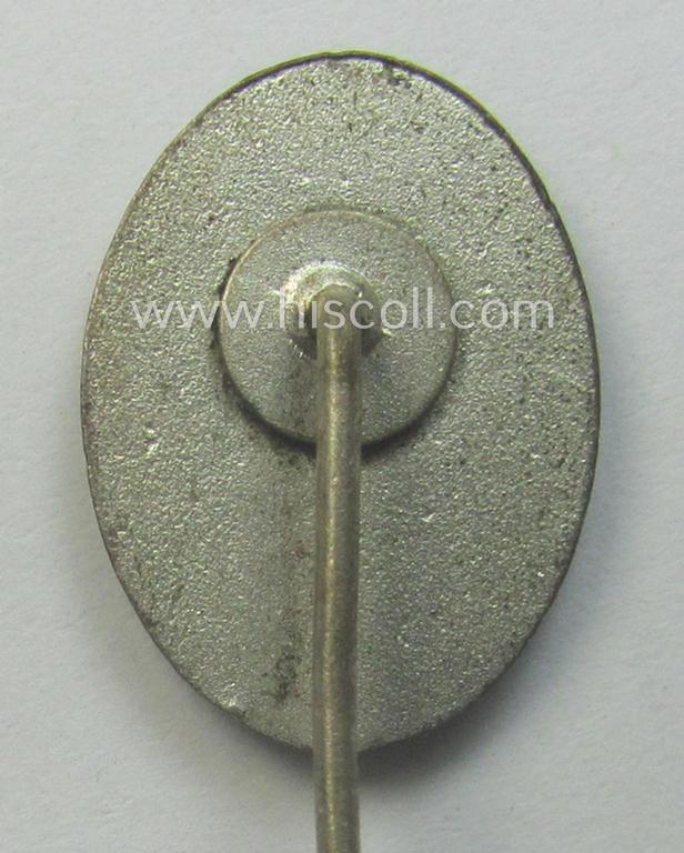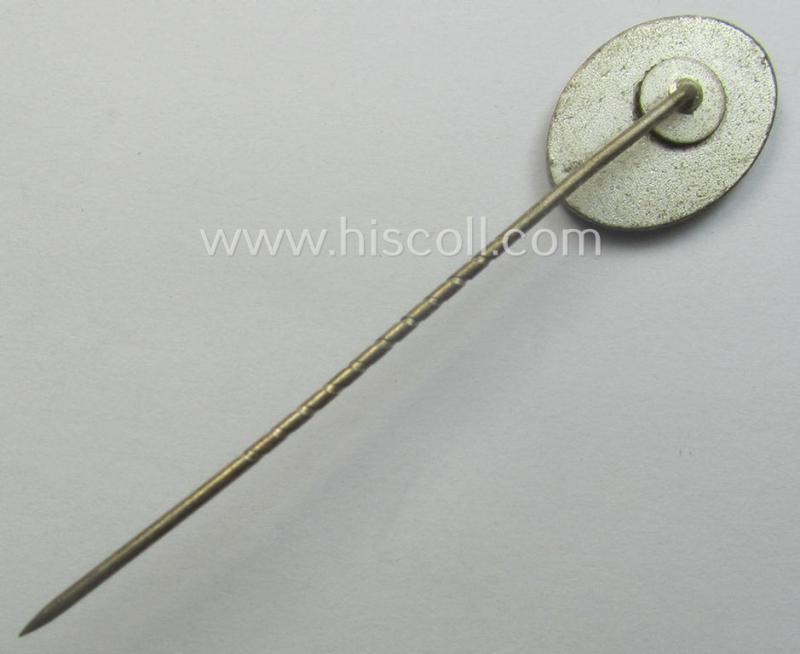This is a nicely executed - neatly green-toned enamelled and actually quite rarely encountered! - so-called: 'Ehrennadel in Gold des Deutsches Kartell für Jagd- und Sportschiessen' (o. 'KKS') (or: golden-class, honorary lapel-pin as was awarded by the TR-period hunting- and/or shooting-association named: 'KKS') and that comes in an overall very nicely preserved- (and totally untouched- ie. fully undamaged-), condition. The neat 'Ehrennadel in Gold' is totally void of a makers'-designation and comes naturally mounted onto its functional (longer-sized) pin as issued and/or worn. The piece shows a tiny swastika-sign coupled with a circular-shaped, green-toned-enamelled 'sign ie. logo' that depicts the golden-toned characters: 'KKS' (as can be noticed on the pictures). A similar example is also figured in the 'Heering-Hüsken'-lapel-pin-catalogue, wherein it is given the unique reference-number: 8749DE and an estimated value of 200 Eu(!). I deem that I have priced this attractive - and unusually seen! - 'Ehrennadel in Gold des Deutsches Kartell für Jagd- und Sportschiessen' (o. 'KKS'), accordingly!