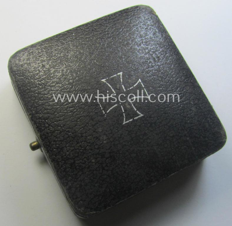 This is an attractive - and just moderately used- and/or worn! - example of an: 'Eisernes Kreuz 1. Klasse' (ie. Iron Cross 1st class) being an (I deem) early-war-period produced (albeit non-maker-marked) example that comes complete in its specific (truly luxuriously-styled and equally nicely preserved!) 'domed-styled'-etui as issued and/or recently found. The cross - which is non-vaulted ie. non-converse-shaped as more often - has most certainly never been cleaned and retains a superb age-patina and/or great pronounced detail. This example - which I deem is an example that was produced by the maker (ie. 'Hersteller') named: 'Wächtler & Lange' as was based in the town of Mittweida - comes naturally mounted onto its functional (and totally unaltered nor repaired) set-up. The back of the cross is just minimally stained (but was never cleaned nor polished though). The (flute-shaped) pin and typical catch (ie. set-up) are naturally unaltered and/or fully functional. The etui comes also in a very fine and complete condition: the silver-rimmed cross that figures on the etui's top is in a very nice and totally undamaged condition whereas the beige-coloured- and (simulated) velvet-like interior is also fully present and in place (it does just show some minimal age and/or staining). The cross was never part of a collection and was recently found at a private-household in Germany. It deals most likely with an IC first class that was produced by the company 'Wächtler & Lange' as was based in the town of Mittweida. I deem that this attactive - matching and fully untouched! - IC-set is with certainty accordingly priced!