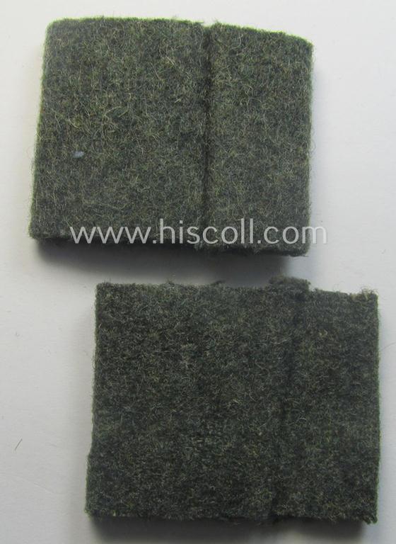 This is an attractive - fully matching and with certainty scarcely found! - pair of WH (Heeres) 'Infanterie o. Landesschützen'-related, so-called: regimental-shoulderstrap-'slip-ons' (ie. 'Schulterstück-Überschuben') as was intended for usage by a: 'Soldat des Landesschützen-Batalions 881' and that comes in a wonderful- (and I deem simply never worn- nor used-), condition. The pair is neatly 'machine-stitched'-embroidered in the typical white- (ie. 'weisser'-) coloured wool (as done in Gothic-styled, so-called: 'Kurbelstickerei) and does show some minimal storage-age only. Simply an attractive pair of 'Infanterie o. Landesschützen'-related 'Überschuben' that is - I deem - accordingly priced: great to 'decorate' a pair of 'weisser'-piped 'Heeres'-shoulderstraps or ideally fitted to keep in any insignia-collection!