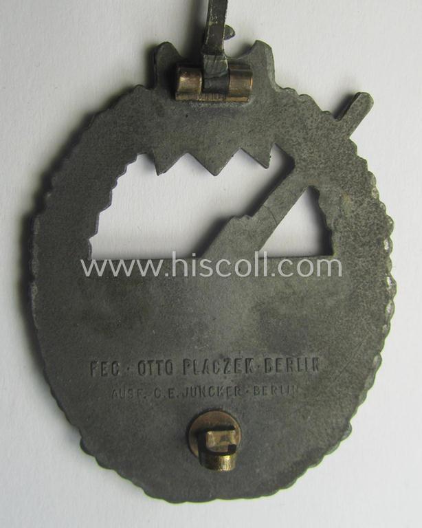 WH (Kriegsmarine) 'Marine-Artillerie-Abzeichen' being a typical zinc- (ie. 'Feinzink'-) based example by the desirable maker- (ie. 'Hersteller') 'C.E. Juncker - Berlin'