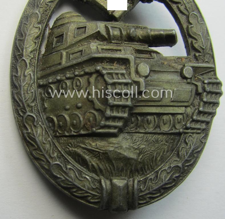 Superb - and hardly used! - 'Panzerkampfabzeichen in Bronze' being a neatly maker- (ie. 'HA'-) marked- and/or zinc- (ie. 'Feinzink'-) based specimen as was produced by the desirable 'Hersteller' (ie. maker): 'Hermann Aurich'
