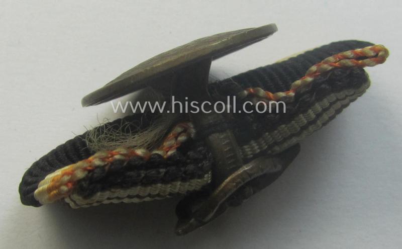 Interesting, 2-pieced WH (ie. N.S.D.A.P.-) related ribbon-bar (ie. 'Feld- o. Bandspange') showing resp. a: 'KvK II.Kl. o. Schwn.' and an: 'N.S.D.A.P. D.A. in Bronze' and that comes mounted onto its specific 'button-hole'-set-up