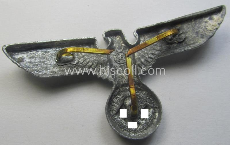 Bright-silver-coloured- and/or: zinc- (ie. 'Feinzink'-) based (political-style) visor- (ie. 'Schirmmützen'-) cap-eagle being a detailed example that is neatly: 'RzM' and/or: 'M1/72' marked on its back